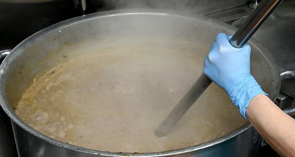 大量の豚骨と鶏ガラを強火で長時間炊き込み、旨みを極限まで引き出したトロみのある超濃厚スープ。