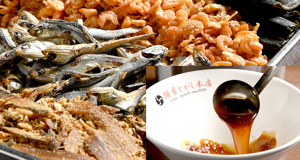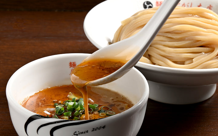 厳選した昆布、椎茸、煮干し、干し海老、サバ節、宗田節をじっくり煮出し、旨みを凝縮した特製醤油ダレ。
